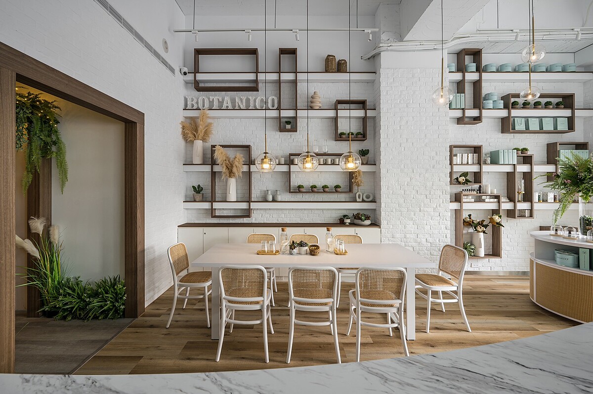 IMOMENT CAFÉ不只是咖啡、早午餐,也是空間的魔法師,穿越過充滿綠意植栽的廊道,就馬上轉換到另一個不同氛圍的情境空間,連燈光都有了細緻的變化,除了延續前方的白色調,裡面添加原木及藤編元素,形成一個私廚概念的共享空間!