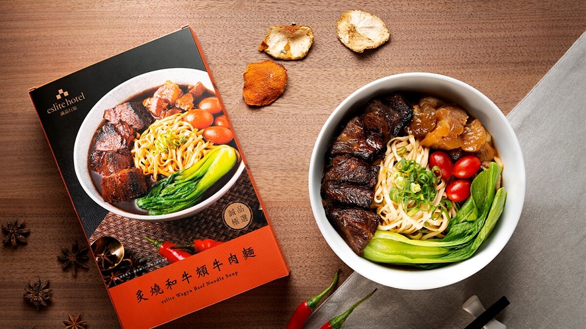 eslite hotel誠品行旅位於1樓的The Chapter Café全日餐廳,將經典人氣料理「炙燒和牛頰牛肉麵」推出外帶常溫禮盒!選用澳洲和牛軟嫩又富含膠質的臉頰肉,湯頭則是經由大量蔬菜、牛骨與嚴選香料細滷慢熬而成。食用時先將生麵放入沸水煮5~6分鐘,接著將料理包倒入鍋內煮沸1分鐘即可輕鬆上桌。每盒350元。