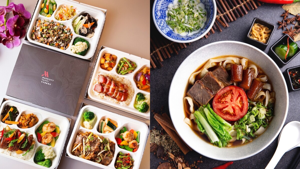 以上餐點建議前一天預訂,每日取餐時間為中午12點~下午1點,以及晚間6~7時。不想出門的老饕們,可以選擇冷凍宅配品項,有台北萬豪經典牛肉麵、麻油松阪豬、黑蒜菜脯雞腿湯、南北杏青紅蘿蔔排骨湯等多元美味佳餚,待在家也能大快朵頤一番。
