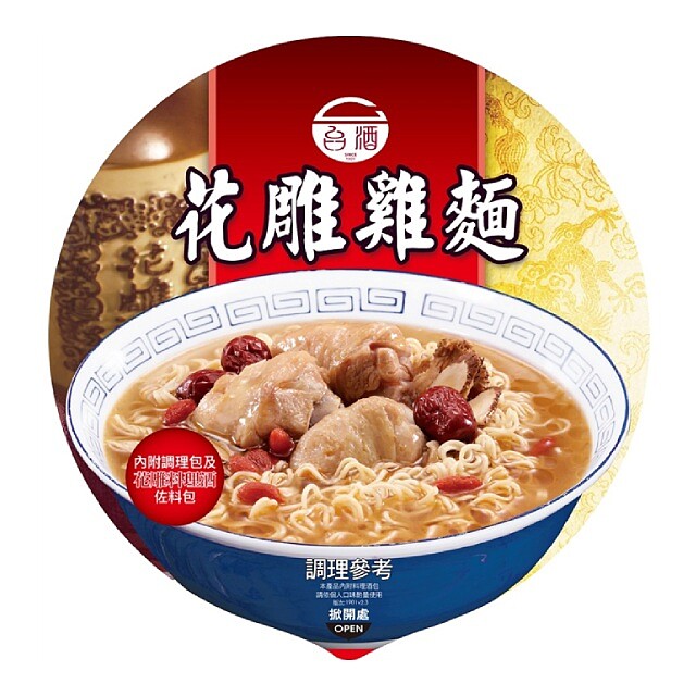 加入台酒遵循古法釀製的料理花雕酒,再搭配風味獨特濃郁的藥膳湯頭,還有香Q的細麵與雞肉塊料理包,每一口都讓人超滿足!但這款口味蠻見仁見智的,如果不喜愛中藥風味湯頭的人就跳過這款泡麵吧!