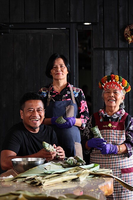 不同於漢人粽子個食概念,小米粽不是一人一顆,而是綁成約手肘狀,煮熟後切段共享。小米粽製作費時,須多人合力完成,而更有有象徵祝福的寓意,包的粽子就越多,代表祝福也越多。
