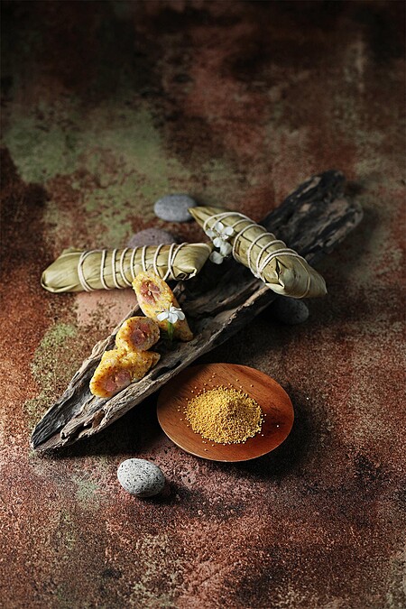 這款小米粽是主廚的最愛,也是他想要傳遞原味的經典代表。小米粽的成分雖然看似簡單,僅用台灣豬五花、黃小米、糯米、鹽與白胡椒,包覆月桃葉增添香氣,就造就了完美融合的滋味!
