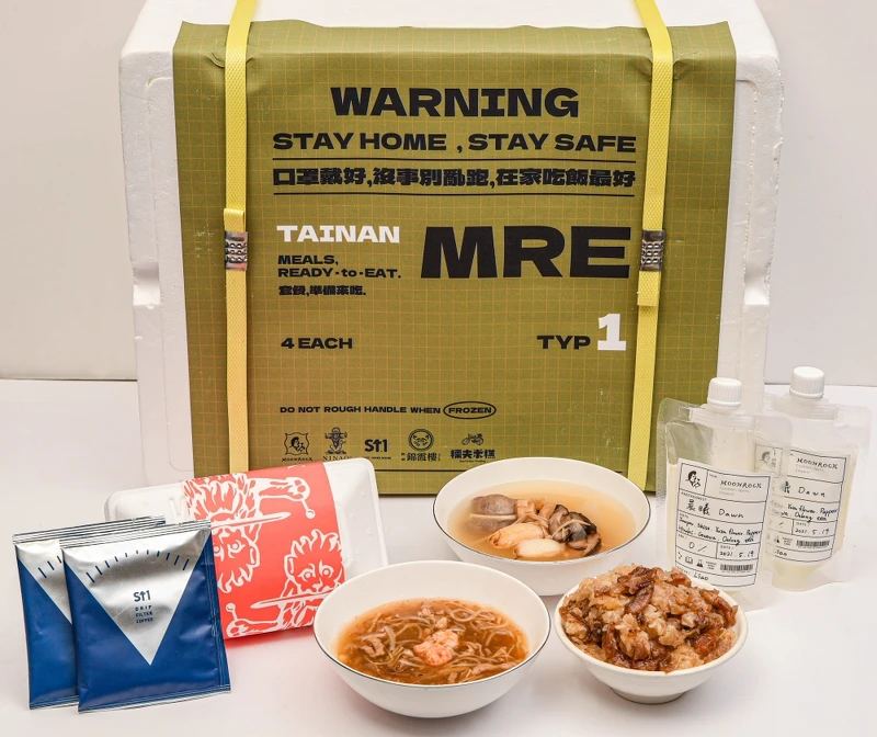 「台南天團全明星備戰糧包」內含品項:錦霞樓花菇干貝豬肚湯2入、鮮蝦海鮮羹2入、糯夫米糕麻油豬軟骨肉米糕4入、蜷尾家提拉米蘇義式冰淇淋1入、Moonrock晨曦 Dawn 四入 (無酒精)、St.1 Cafe’濾泡/濾掛咖啡包 各兩入(四款口味隨機),售價1999元,5/28開賣。