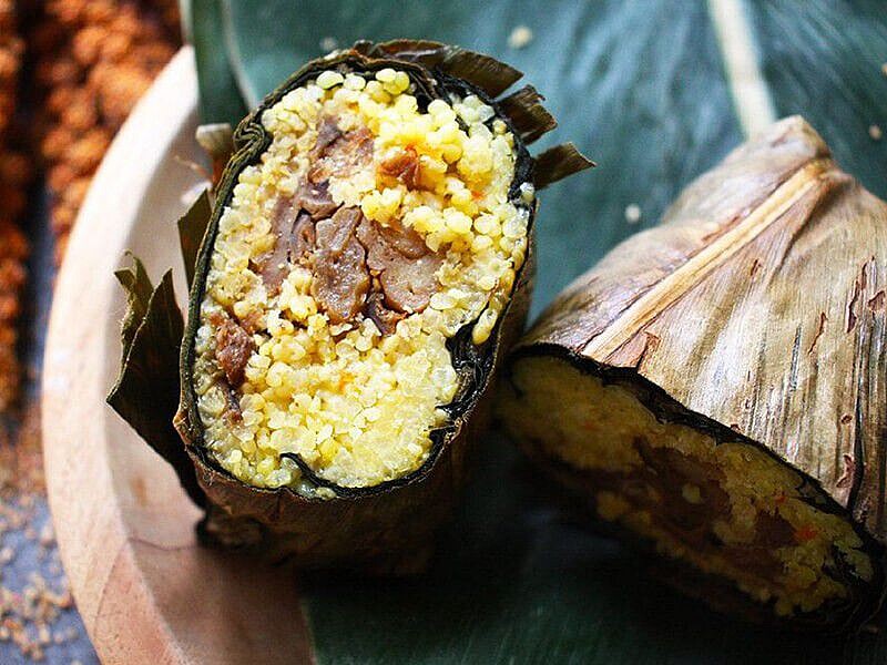 阿粨(a-bai)是原民部落中常見的食物。將小米、豬肉等食材裹入內餡,再以假酸漿葉包覆,最外層則包上川燙軟化過的月桃葉,食用時連假酸漿葉一起吃口感層次豐富。