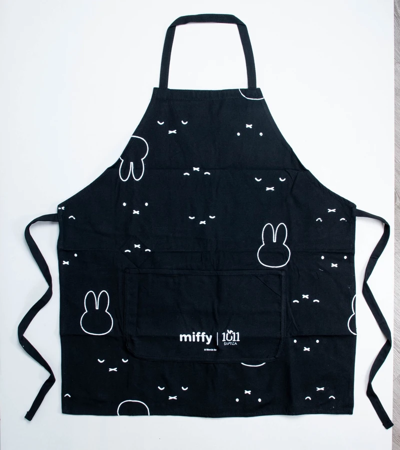 在黑色圍裙印上miffy圖案,方造型口袋便利。由可愛的miffy陪伴著大家一起料理吧。