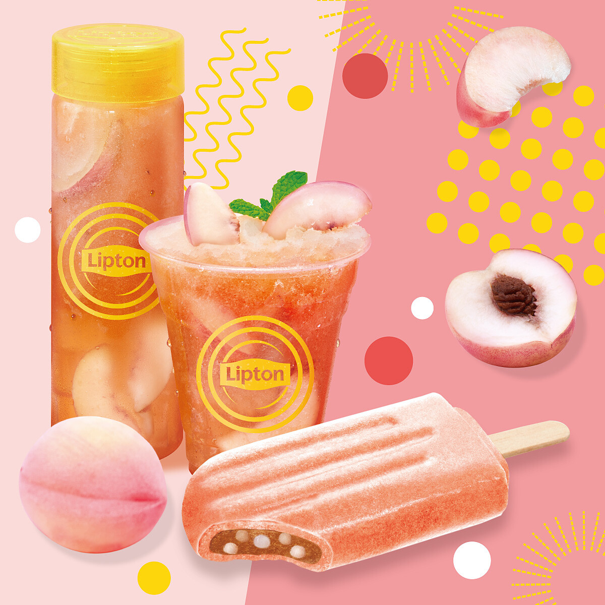 超夢幻的少女系口味,源自日本立頓全新冰沙水果茶概念,將蜜桃果汁與紅茶冰沙完美結合,採用獨家雙層結構:蜜桃冰棒的外層是橘粉色調,內餡則是粉條紅茶冰沙!