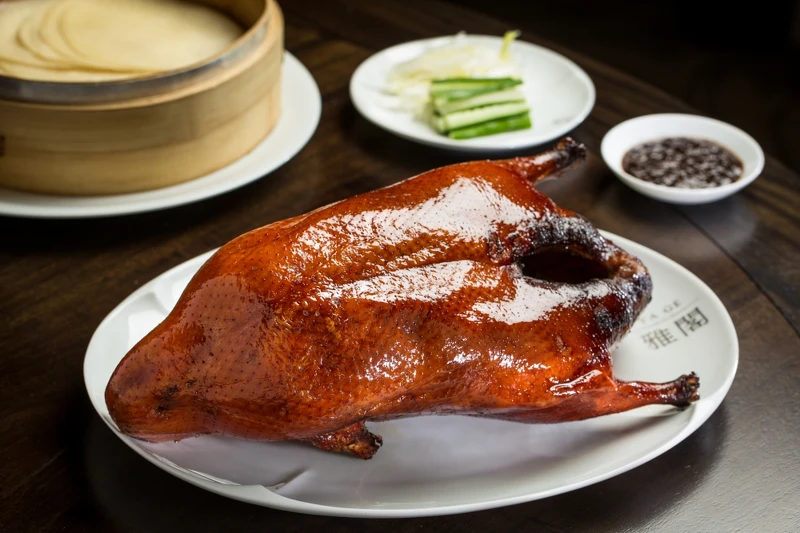 米其林一星「雅閣」中餐廳新菜色重頭戲,莫過於獨創的「舒肥慢烤櫻桃鴨」,嚴選5個月大的宜蘭櫻桃鴨,有片皮鴨、鴨架湯二吃方法,金黃酥脆鴨皮、細嫩多汁鴨肉、鮮美精華令人唇齒留香!每日限量供應,請先電話預約。新菜色還有雙冬炒遼參、爆汁黑豚肉餡餅、葡式蛋塔等經典粵式料理。