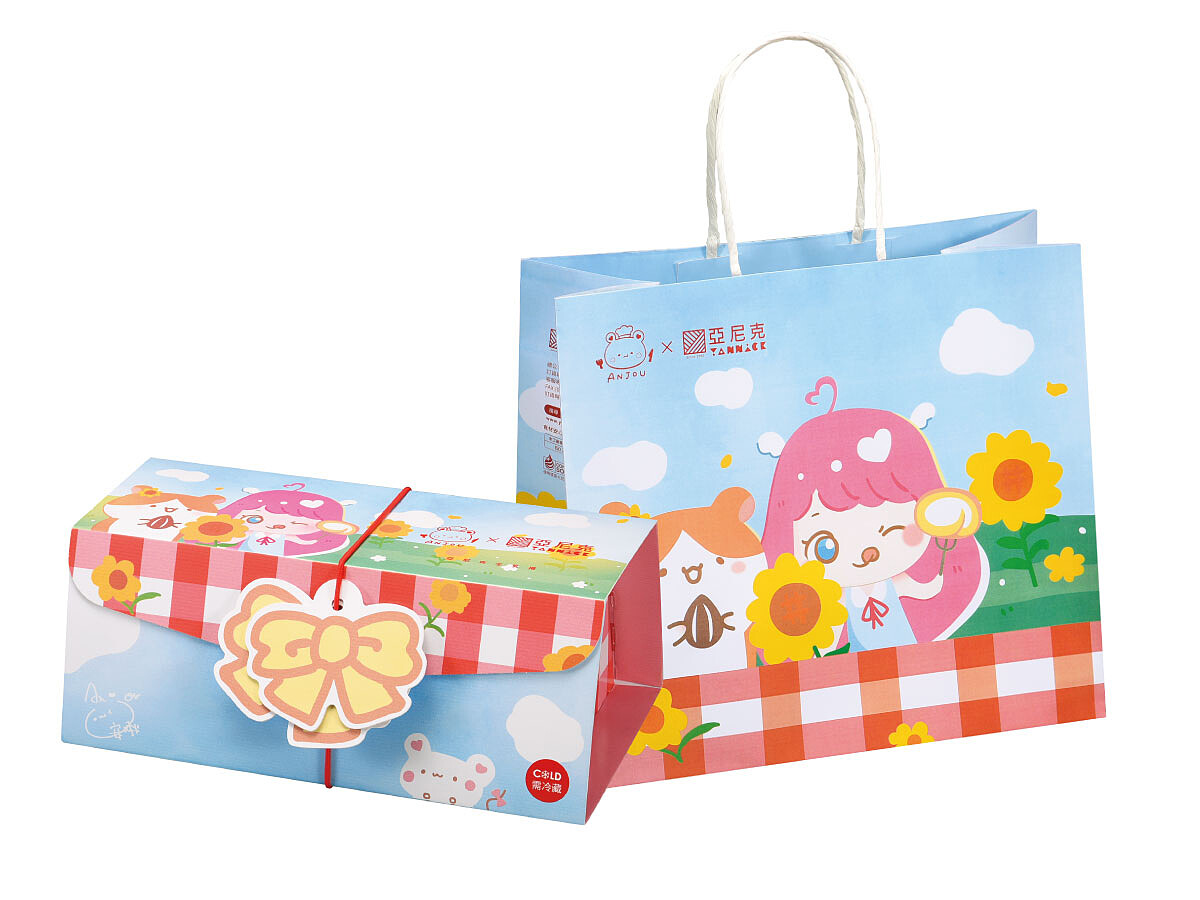 從外盒就充滿巧思設計,由安啾咪親自繪製,以向日葵和藍天的印象進行創作,搭配鄉村風格野餐墊格紋設計,一起在向日葵花田享用生乳捲的幸福、感受明媚夏天的到來吧。最外面還附上蝴蝶蝶吊卡,生乳捲變成小粒物的感覺,且每條聯名生乳捲內還附有安啾咪簽名的產品小卡,一共三款隨機附贈,