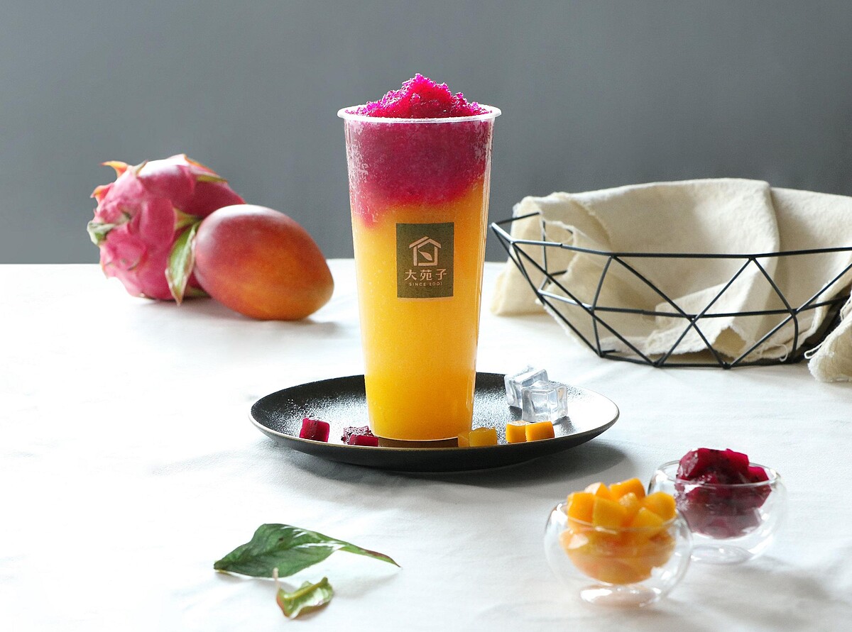 不只有火龍果,更加入了愛文芒果製成的芒果冰沙,在透明杯身上創造出美麗的漸層色彩,其冰沙口感的滋味,還吃得到新鮮芒果果肉,一次滿足饕客的味蕾。