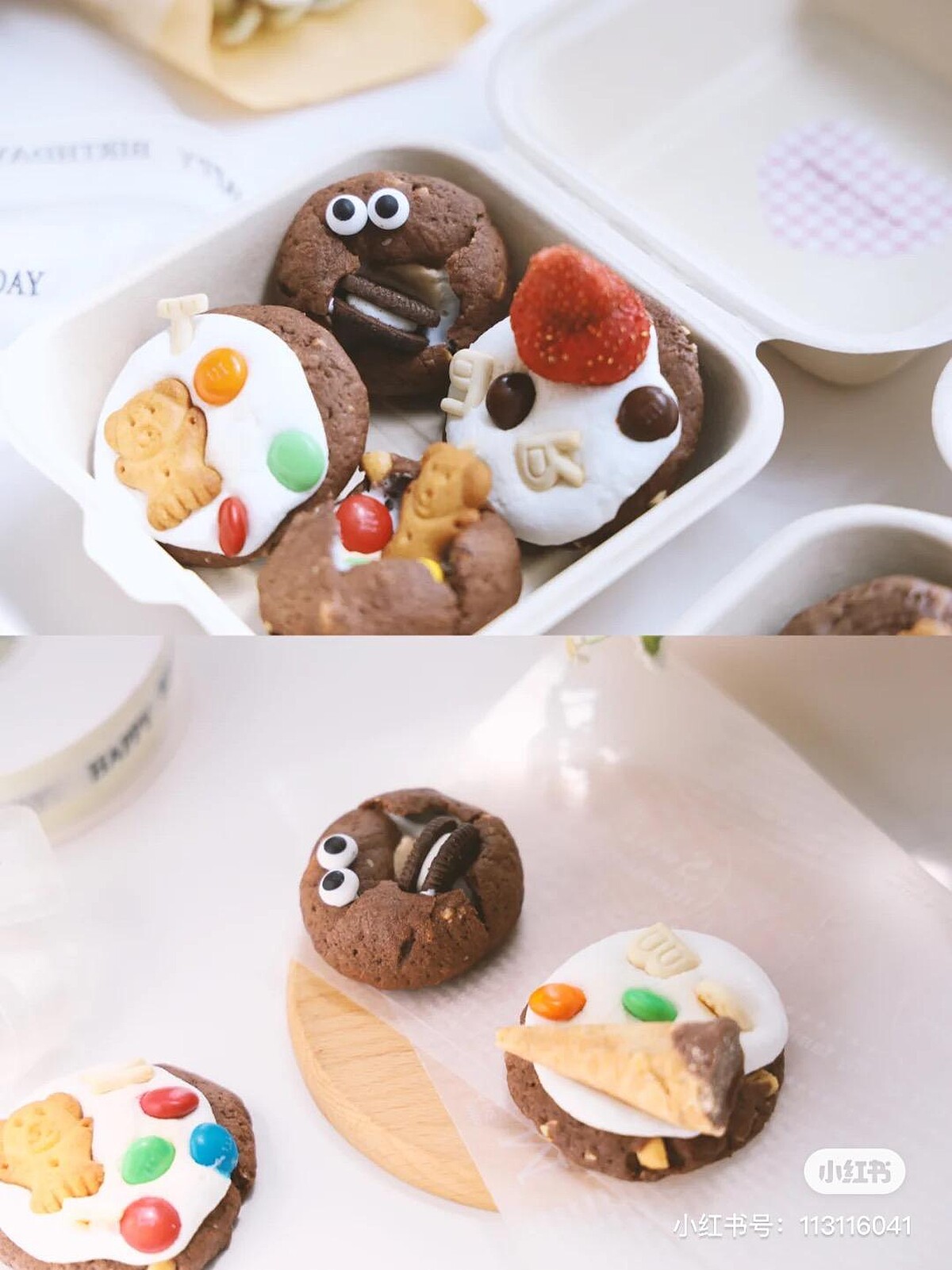 步驟七、烤好後趁熱把喜歡的裝飾餅乾或糖果放在棉花糖上,可愛又療癒的棉花糖曲奇餅乾就完成啦!