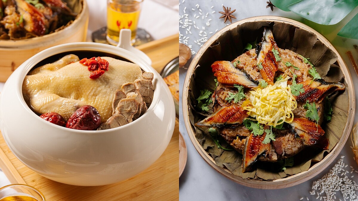 全以「養生」為主題,台南晶英酒店推出粵式「漢方養生雞煲湯」,將軟嫩仿土雞與漢方藥材、豬腱肉、紅棗、甘草、乾薑等食材熬煮,呈現充滿膠質又回甘的湯頭與軟嫩肉質。台南老爺行旅則端出辦桌必備的「蒲燒鰻米糕」,富含營養的鰻魚、糯米與配料,令人唇齒留香。