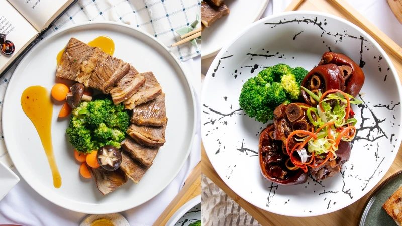 台南大員皇冠假日酒店的「粵式煙燻雪花牛」將上等美國去骨牛小排以獨門醬汁慢火滷製兩小時,再加入紅糖、烏龍茶葉煙燻,金黃色澤、清新茶香都使人食指大動。台糖長榮酒店推出的「懷舊滷豬腳」,用紅麴粉為台糖安心豚前腿豬蹄花提味,滿滿膠原蛋白相當Q彈。