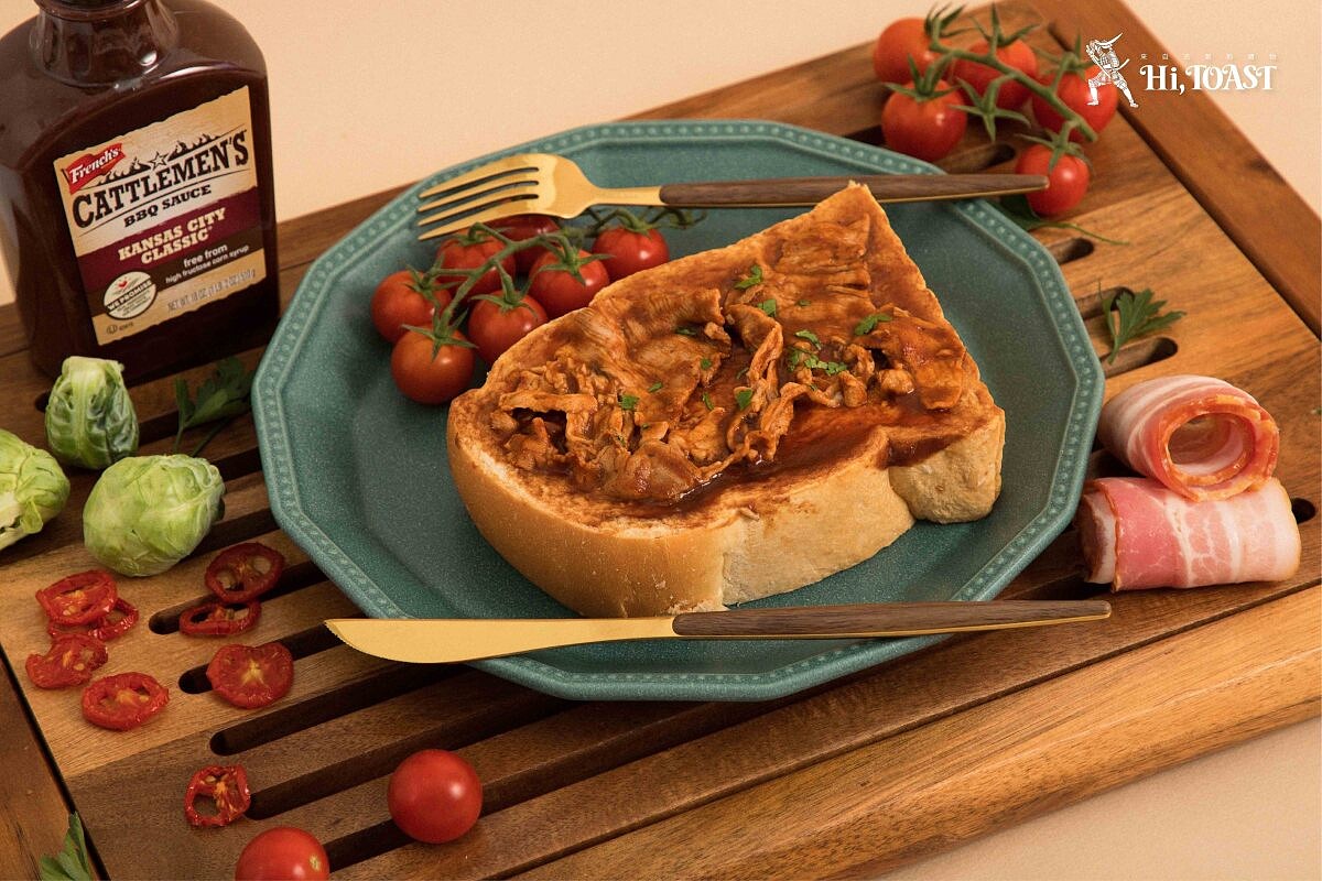 主廚發想於德州飲食文化自製獨門BBQ醬,上層鋪滿醬醃台灣梅花豬肉,配上吐司烤過後香氣逼人,今晚想來個重口味就來一片醬燒梅花豬吐司吧!