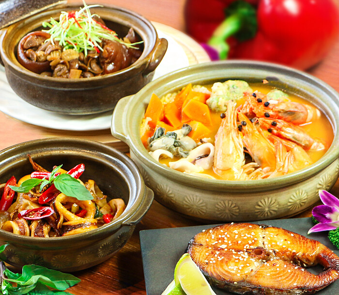 「澎湖豪華海陸組」勢必讓吃貨大滿足,包含用昆布高湯及澎湖南瓜與生米慢慢熬煮成濃郁口味的「南瓜大蝦海鮮粥」,以及Q彈肉質的三杯鮮小管、緊實彈性肉質的香烤味噌土魠魚、加入特有食材的石鱉花生滷豬腳,豪華海陸大餐一次下肚!