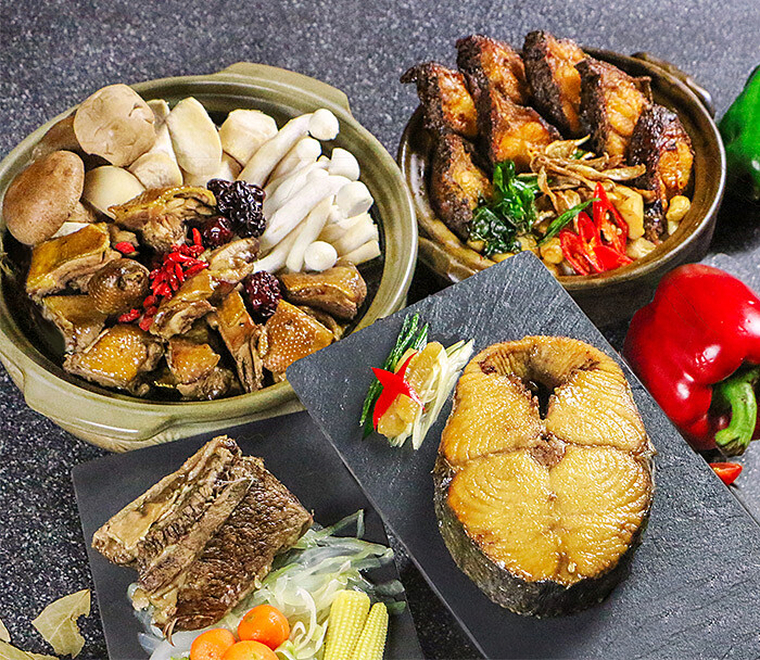 「福朋經典熱銷組」菜色包含用香料及藥材燉滷而成的「福朋秘製牛小排17盎司」、將放山雞慢火燉煮12小時的「養生藥膳雞湯」、擁有豐富膠原蛋白的「塔香三杯金錢鰻」,嚴選在地豐厚又緊實肉質的「秘製菜脯半煎煮土魠魚」。兩款皆能以簡單5分鐘復熱方式端上桌,對於小家庭或單身族來說都相當方便。