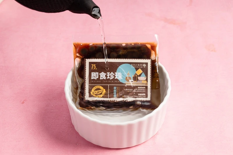 3、將即食珍珠加入沖泡完成之飲品中。