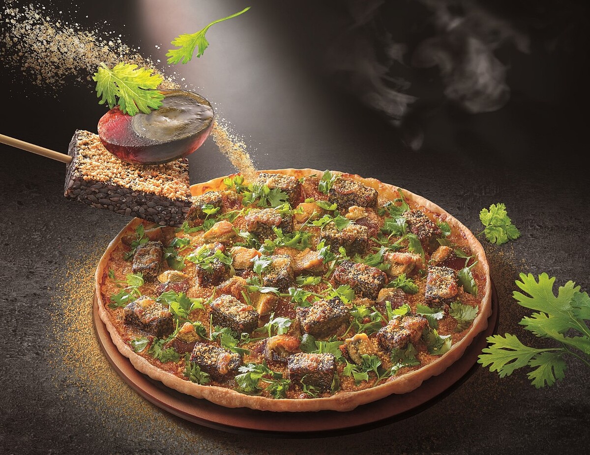 必勝客的台味口味系列每次一推出就引爆話題,這回推出「香菜皮蛋豬血糕比薩」結合豬血糕、花生粉、Q彈皮蛋,再加上總是有兩派宣戰的「香菜」,打造出今夏最新奇的的混搭美味。