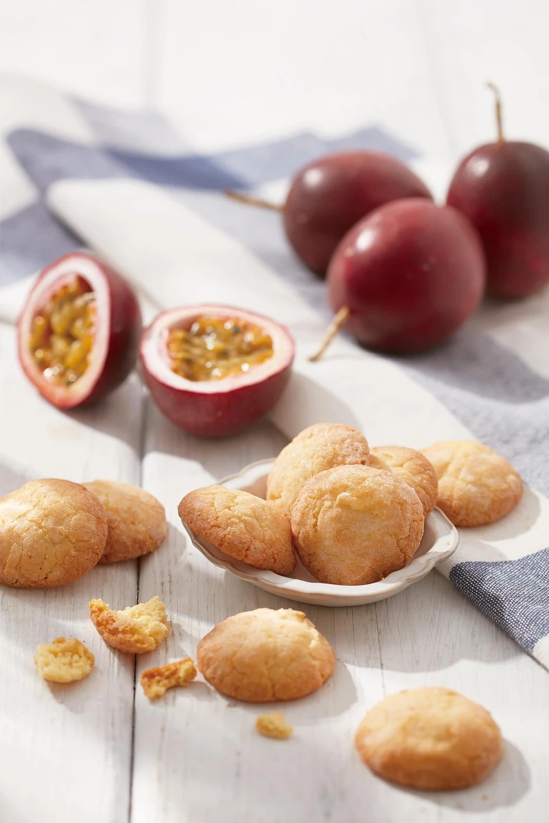 融入百香果泥的迷人香氣搭配餅乾上的薄糖霜,打造出獨特風味的清爽風味。