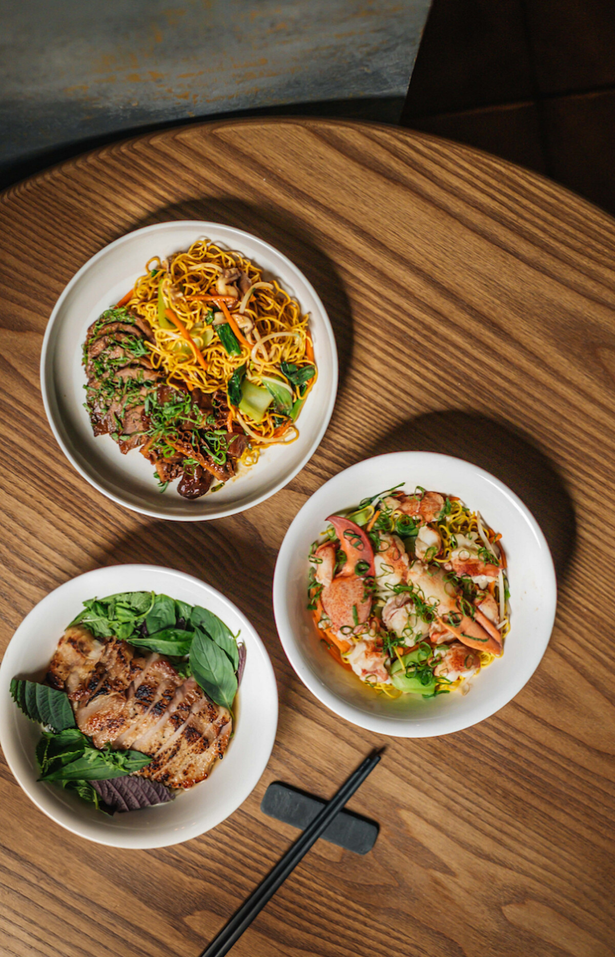 《LONGTAIL》這回推出拌麵系列外帶餐盒,分別有「港式牛三寶撈麵」、「波士頓龍蝦撈麵」以及「越式香煎盤克夏豬排米線」等三款風味獨具的麵食,Chef Kin特別選擇從小吃到大,且麵體本身帶有嚼勁的傳統港式撈麵來呈現,另附上一包特製麻辣醬,嗜辣者可加入更添風味層次。