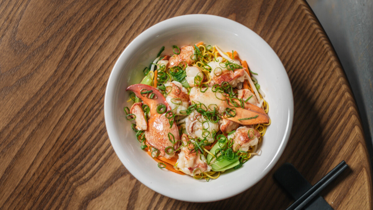 其中「波士頓龍蝦撈麵」採限量供應,吃得到一整隻波士頓龍蝦,鮮活龍蝦融合白味噌、柴魚、昆布、薄荷葉、百里香、迷迭香等香草泡煮一小時,,些許日本柑橘醋讓口感微酸,加進胡蘿蔔、香菇、青江菜、銀芽拌入撈麵更為爽口開胃。