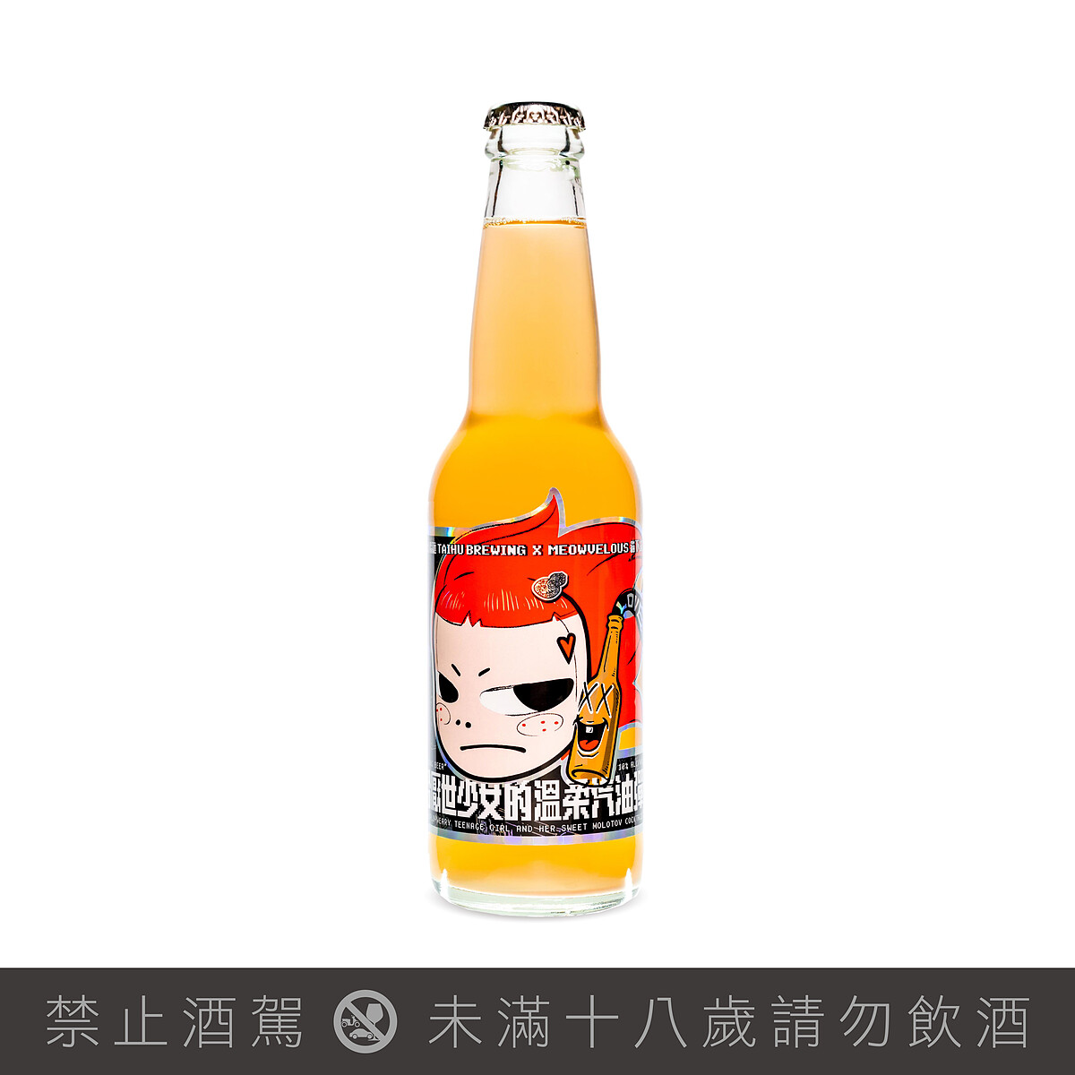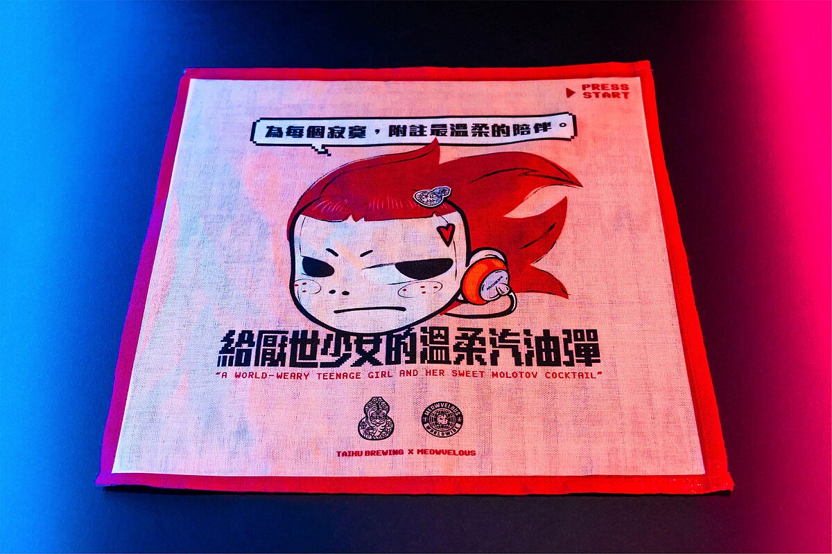 這款聯名調酒用上蘋果、玫瑰、仙渣、刺蔥等輔料,中和了啤酒中常見的苦韻,喝起來口感清新、氣泡感細緻,也同步推出「厭世少女汽油彈方巾」,以玻璃瓶搭配厭世少女方巾所組成,重現令人會心一笑的汽油彈形象,以及「厭世少女T-shirt」等周邊商品,將自7/9(五)於貓下去敦北俱樂部、臺虎精釀直營門市開始販售。