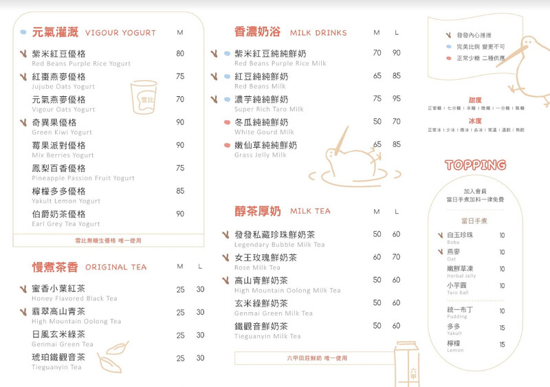 奶茶狂粉則可以選擇「醇茶厚奶」系列,使用六甲田莊鮮奶,「濃芋純純鮮奶」堅持使用純正大甲芋頭及芋圓,以低糖每日手工熬煮,無添加任何人工色素,而「伯爵奶茶優格」為發發店長私心推薦款,使用Twinings格雷伯爵茶葉,特殊柑橘香氣搭配滑順細膩的原味優格,引出縈繞的乳香與濃郁口感。
