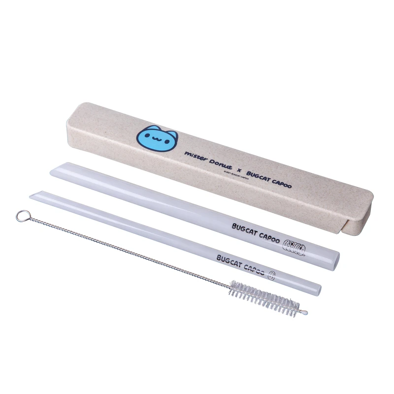 滑蓋設計的小麥收納盒玻璃吸管組,裡面附有粗、細吸管各1入、清潔刷1支,無論是要喝加料的手搖飲或無料茶飲一次滿足。