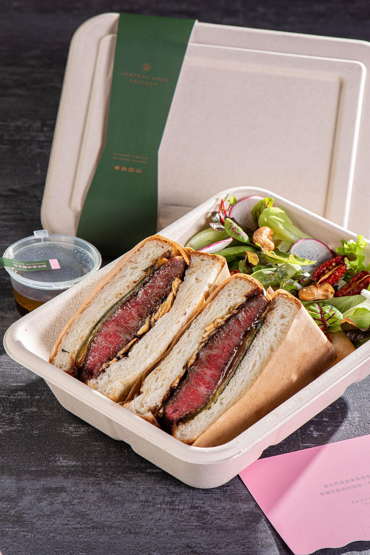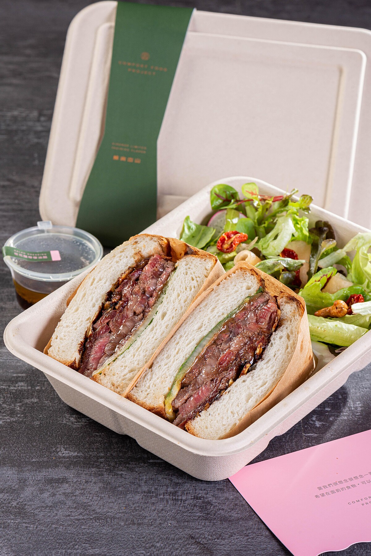 與日本鳥取的高級生吐司品牌「TREES BREAD」攜手打造的「和牛牛排吐司」以口感有彈性無添加帶著自然麥香的日本山形吐司,再放上炙烤到六分熟、肉質細緻、不油膩的整塊後臀牛排。