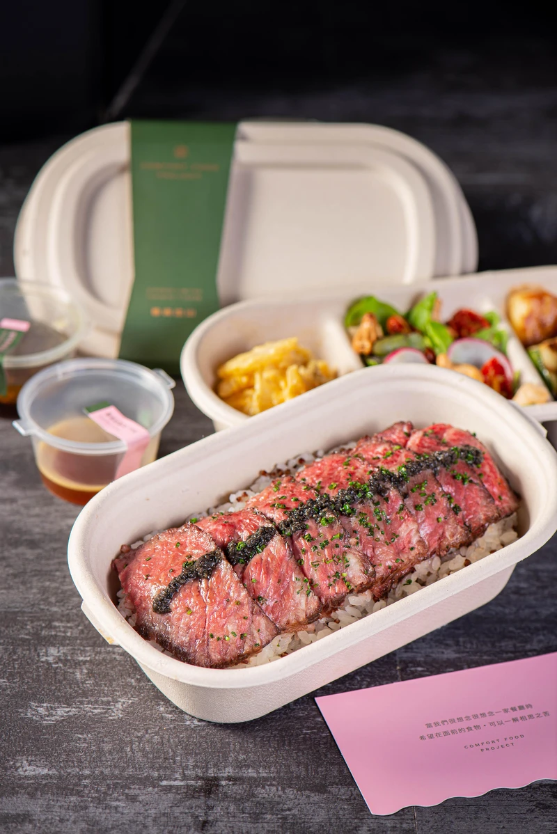 使用Prime等級安格斯黑牛,取牛肩胛中的軟嫩部位,以高溫炙烤後再利用稻草煙燻增添風味層次,並佐上香氣馥郁的松露醬、漬蛋黃,再搭配紅藜麥越光米飯,每一口都讓人感到幸福滿滿!