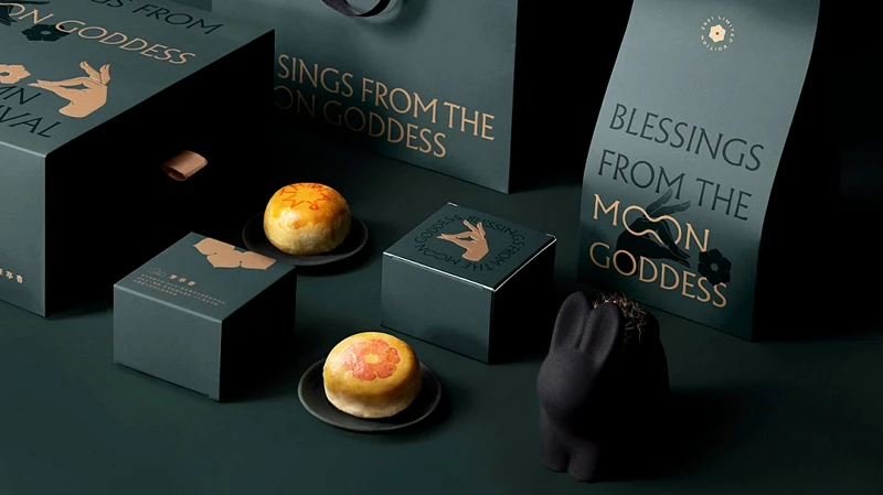 「盈月品秋」 禮盒特地市面上常見的月亮、橘黃色系包裝做出區隔,由製所設計操刀、將象徵「有肉」的綠色作為外包裝底色,主視覺則以嫦娥的手比出「OK」動作,也如同兔子的姿態般,傳遞出中秋節、安心祝福。主角月餅則二度攜手百年老店「李亭香」合作獨家月餅,印上「療癒植物」與「WARMTH」圖案,讓收禮對象能接受到團圓、暖心意涵。