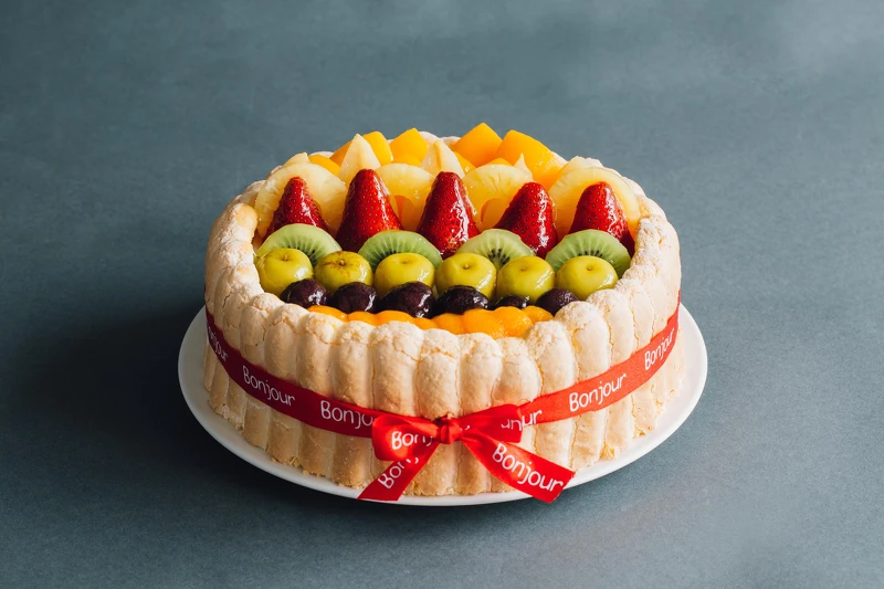 位在民生社區的人氣甜點店朋廚Bonjour 以香草風味蛋糕體為基底,再以法式杏仁姆指餅乾包裹,厚抹上自製手工卡士達布丁內餡及新鮮水果丁,最後打上紅色緞帶,獻上對老爸的真心誠意。
