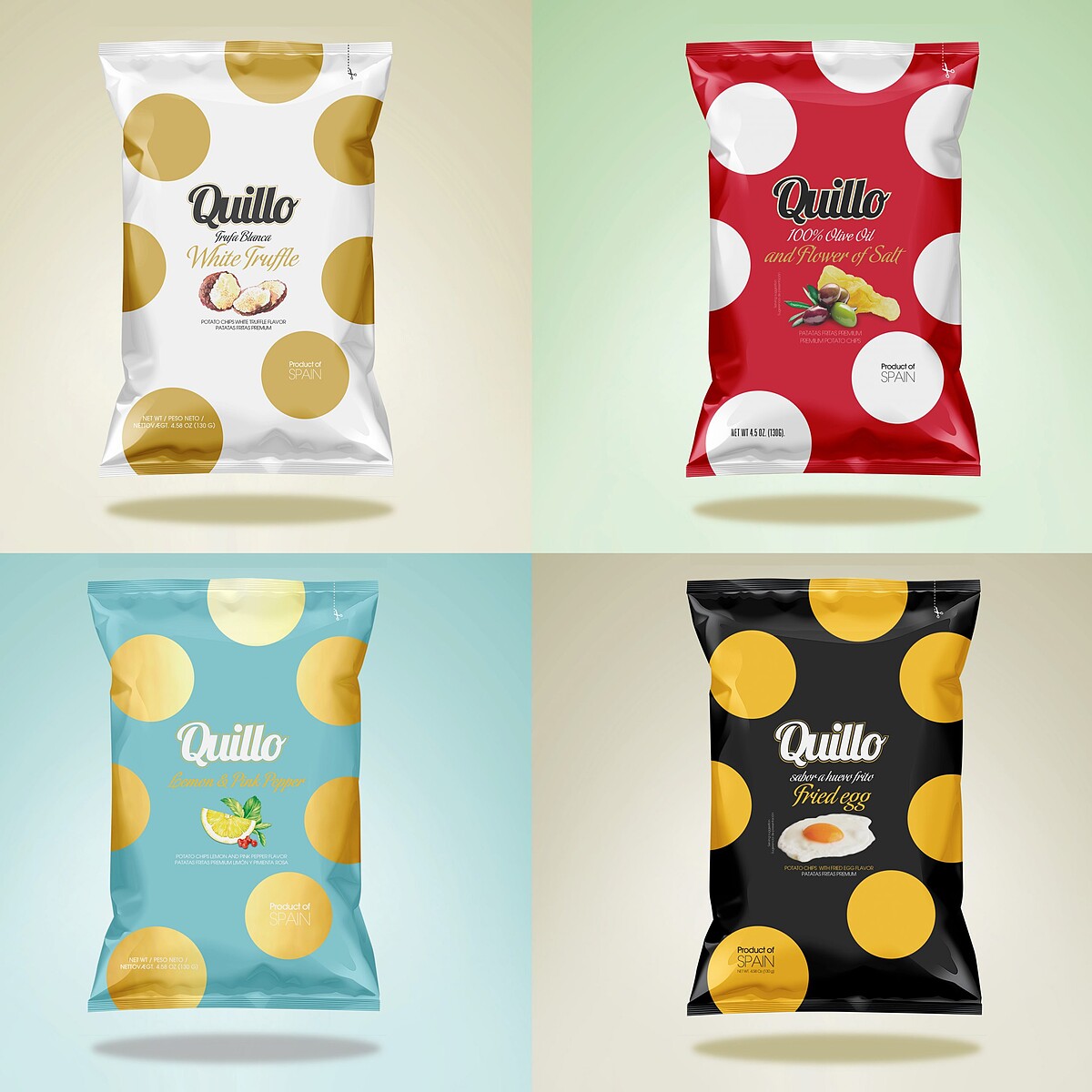 來自西班牙的Quillo獲得IFS 國際食品標準認證,且全系列皆不含麩質及過敏原,嚴選優質馬鈴薯,佐以100%有機的手工鹽 之花調味,而油炸過程使用高品質的西班牙橄欖油,而非一般棕櫚油,最後用氮氣包裝產品以防止氧化,讓洋芋片保持酥脆口感且每片口感維持一致。