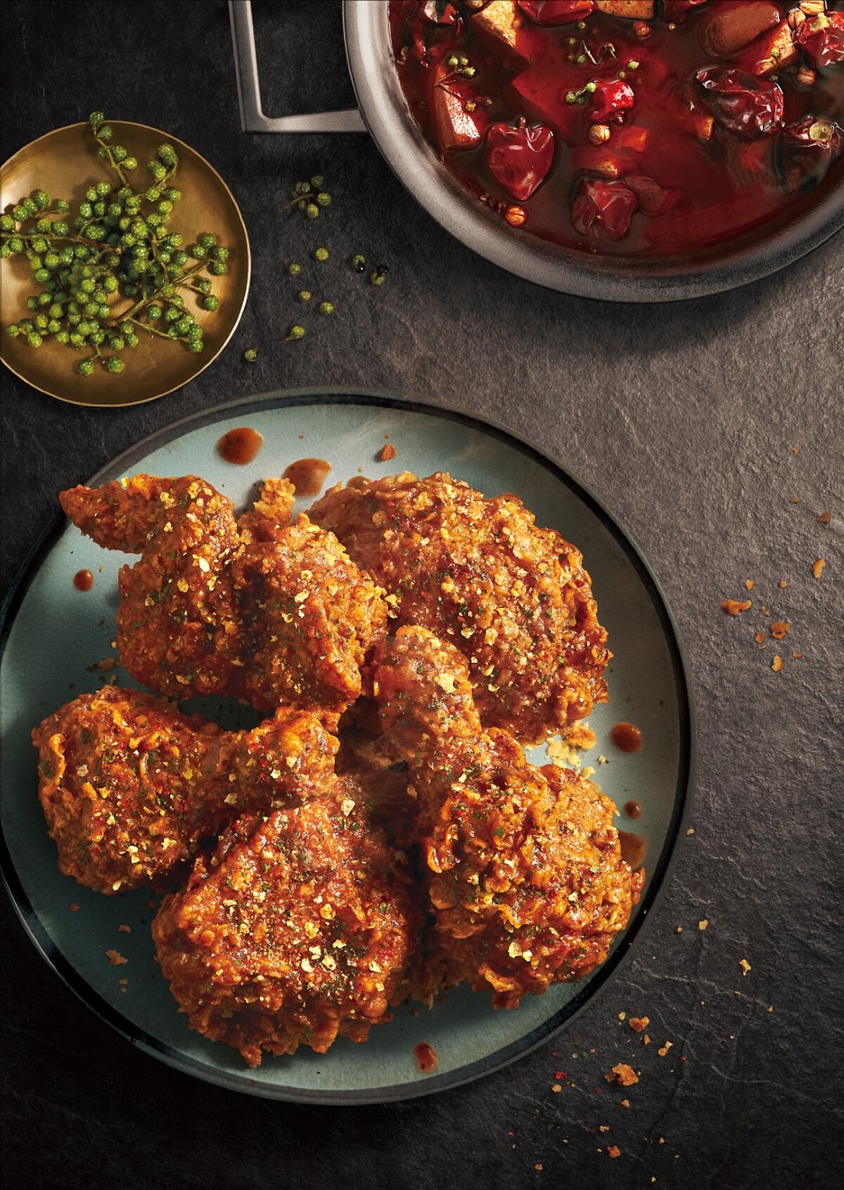 肯德基這回也要挑戰你的味蕾,首度和《青花驕》合作,推出全新口味炸雞「青花椒香麻脆雞」,選用道地的青花椒與多種辛香料熬煮成獨門醬汁,酥脆多汁的經典咔啦脆雞裹上青花椒香麻醬,香麻的層次口感可是相當開胃啊!