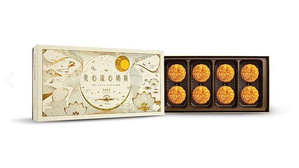 另外加入香港美心月餅獨家首創「流心技術」的「流心奶黃月餅」,選用法國奶油、東南亞椰奶及新鮮頂級鹹蛋黃,再經雙重烘焗製成。同樣無須加熱、輕輕切開時會看到香滑奶黃緩緩流出,其四溢的香氣也是銷量常勝軍,是中秋節送禮的不二選擇。一盒8顆,售價1520元。