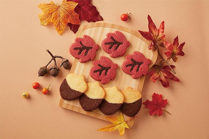 以秋日森林場景為設計發想,打造滿載秋天氣息的氛圍。楓葉餅乾以天然紅麴調色入味,橡果餅乾則將香草、巧克力的經典雙口味完美結合,香氣四溢的酥脆口感搭配精緻造型,這麼可愛怎麼捨得吃!