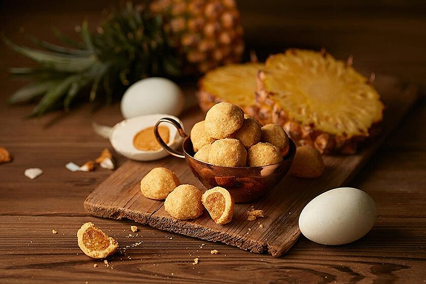 除了超可愛的小鹿斑比禮盒外,這次還有全新的「金鑽鳳凰酥球」,嚴選台灣在地食材,採用屏東紅土鹹鴨蛋黃與高雄大樹鄉金鑽鳳梨製作而成,濃郁的鴨蛋黃的濃郁鹹香,融合果肉細緻的酸甜鳳梨餡調配黃金比例,交織而成令人驚豔的味覺饗宴,只有購買小鹿斑比系列「秋日」禮盒才能品嚐到!