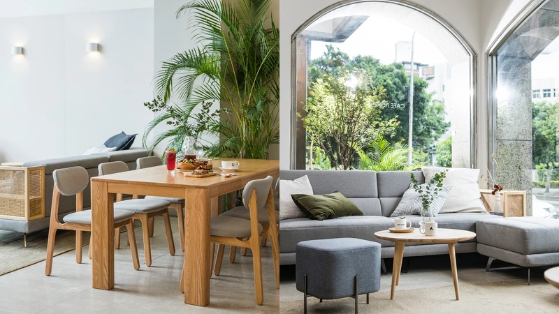 室內設計滿足大家對家的嚮往,60席座位環境用大量留白空間設計,配選用「hoi!好好生活」家飾品佈置,呈現出如在家一般的舒適自在。而若對現場家具心動,也可以直接下單選購。另外還推出兩款聯名香氛,有象徵早晨舒服輕鬆的「MISS MISS AMERICANO」,以及清爽香氣的「OAKWOOD ROAST」能為生活帶來愉悅氣息。