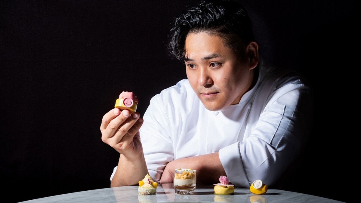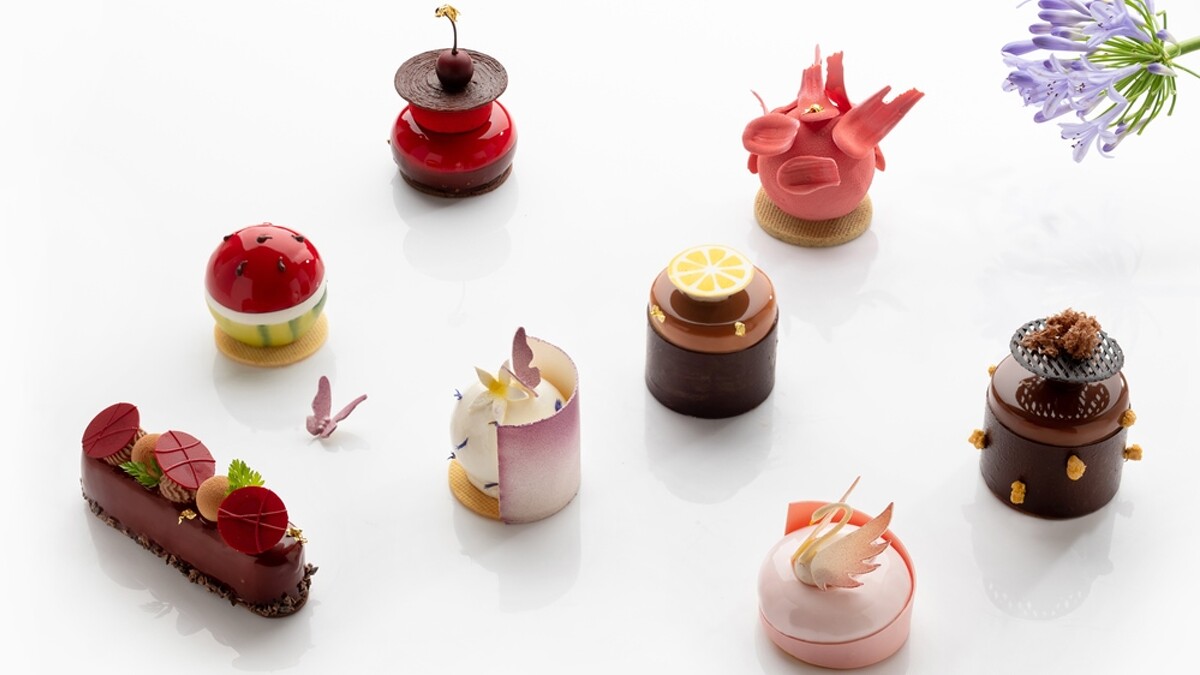 新任行政西點主廚趙崇曦自4月上任,曾遠赴法國、西班牙、日本學習廚藝,並於2002年加入香港文華東方酒店,至今擁有20年烘焙經驗。他設計甜點時重視造型與口感層次搭配,特別喜歡加入時令水果平衡甜度、增添果香,也擅長揉合香料及茶品堆疊食材風味。另外他也擅長用各式技法,為專精的巧克力造型甜點創造出驚艷吸睛外型。