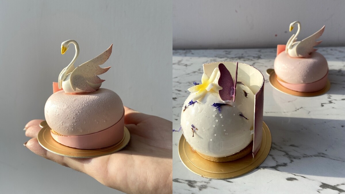 其他亮點作品還有用紅心芭樂醬加入金門高粱奶霜的「天鵝湖」,有著濃郁果香及酒香尾韻,而帶點粉色的夢幻外型,實在叫人捨不得吃!將楊貴妃最愛水果荔枝與西瓜作為靈感的「沁涼西瓜」,由荔枝慕斯、薄荷西瓜果凍與檸檬蛋糕交織出清爽香甜滋味,在舌尖上演出一段動人的夏日交響曲。