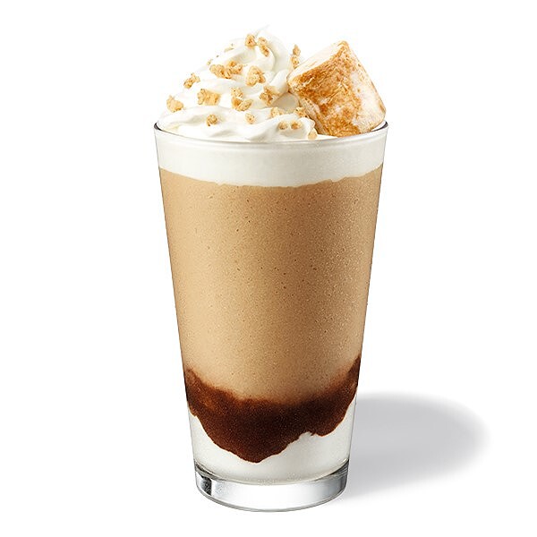 「烤棉花糖咖啡星冰樂」是北美星巴克最受顧客喜愛的一款飲料之一,S’more是「some more」的縮寫,因為棉花糖和巧克力加在一起的甜美滋味,讓這種點心贏得了「some more」 的可愛名稱。此款以香草調味的咖啡星冰樂,混和底部的棉花糖鮮奶油和摩卡醬,上方除了酥脆的全麥餅乾碎粒外,還有一顆完整的烤棉花糖,絕對能滿足甜點控的味蕾。