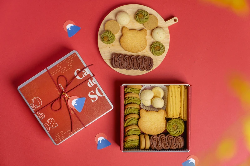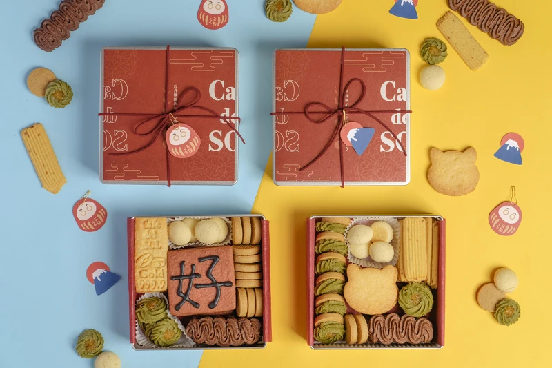 除了祈福與餅乾外,禮盒內還有日本柚子青茶、咖啡小圓餅、巧克力餅乾、雪球餅乾、莓果紅包、南瓜起司酥餅等,相信收禮人會驚喜滿滿!