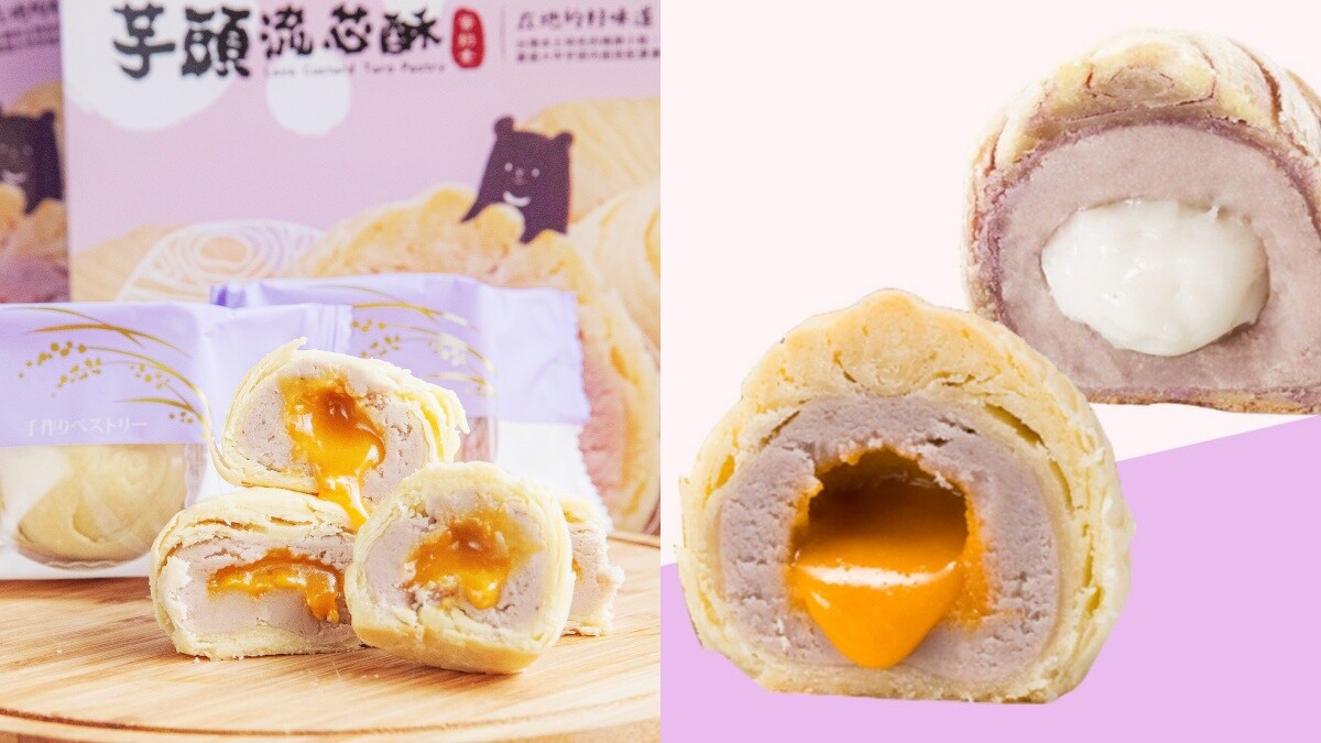 芋頭流芯酥嚴選大甲芋頭搭配鹹蛋黃流芯內餡,與酥香外皮,芋頭控絕對不能錯過!麻糬芋頭酥內餡Q彈不膩口,層層堆疊出多層次口感,與濃郁的芋頭香氣,讓人一吃就愛上!