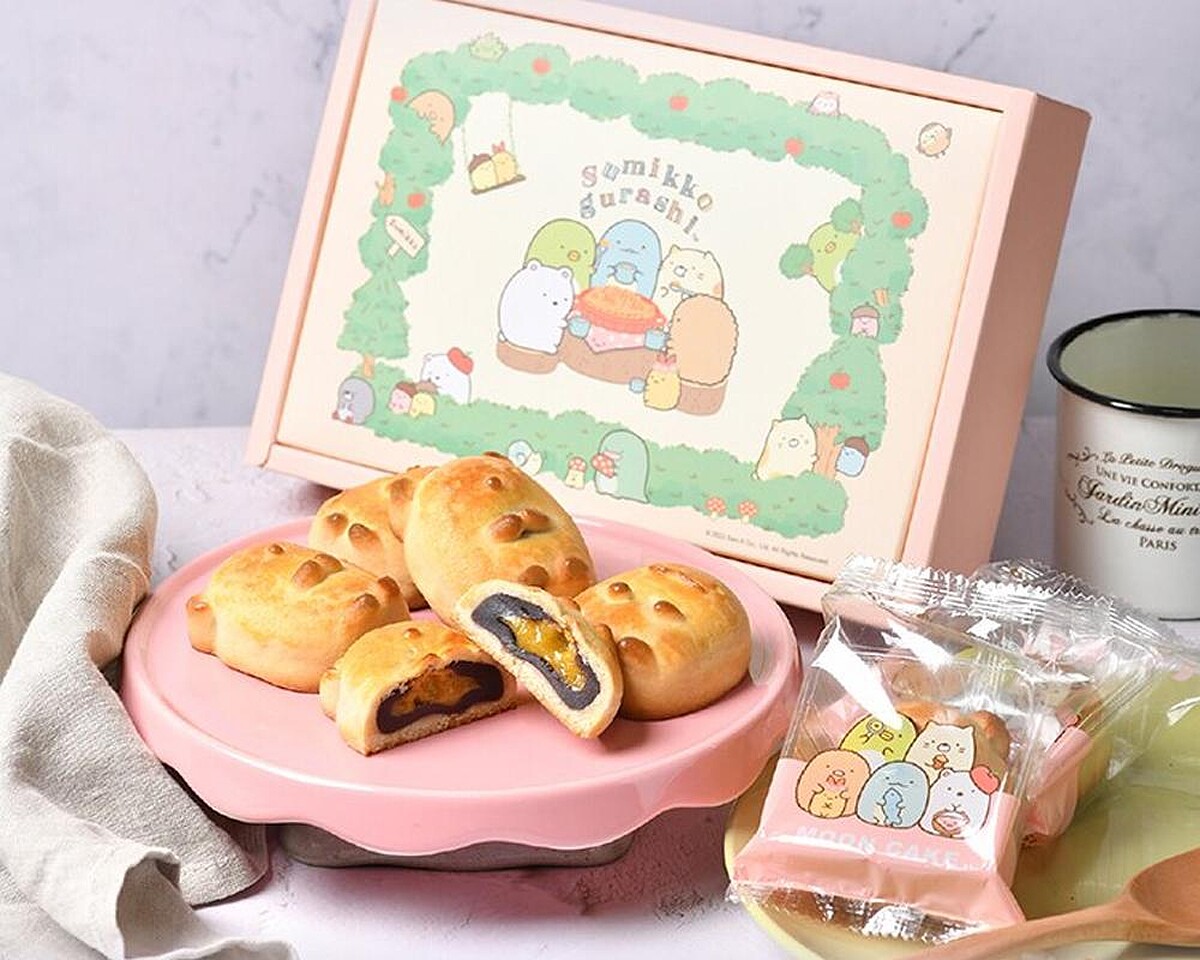 流沙月餅製作白熊、蜥蜴、貓咪等超萌的角落小夥伴造型,外層酥皮以蜂蜜與奶油製成,內餡則是烏豆沙餡搭配鹹蛋黃流沙餡,鹹甜滋味超療癒!