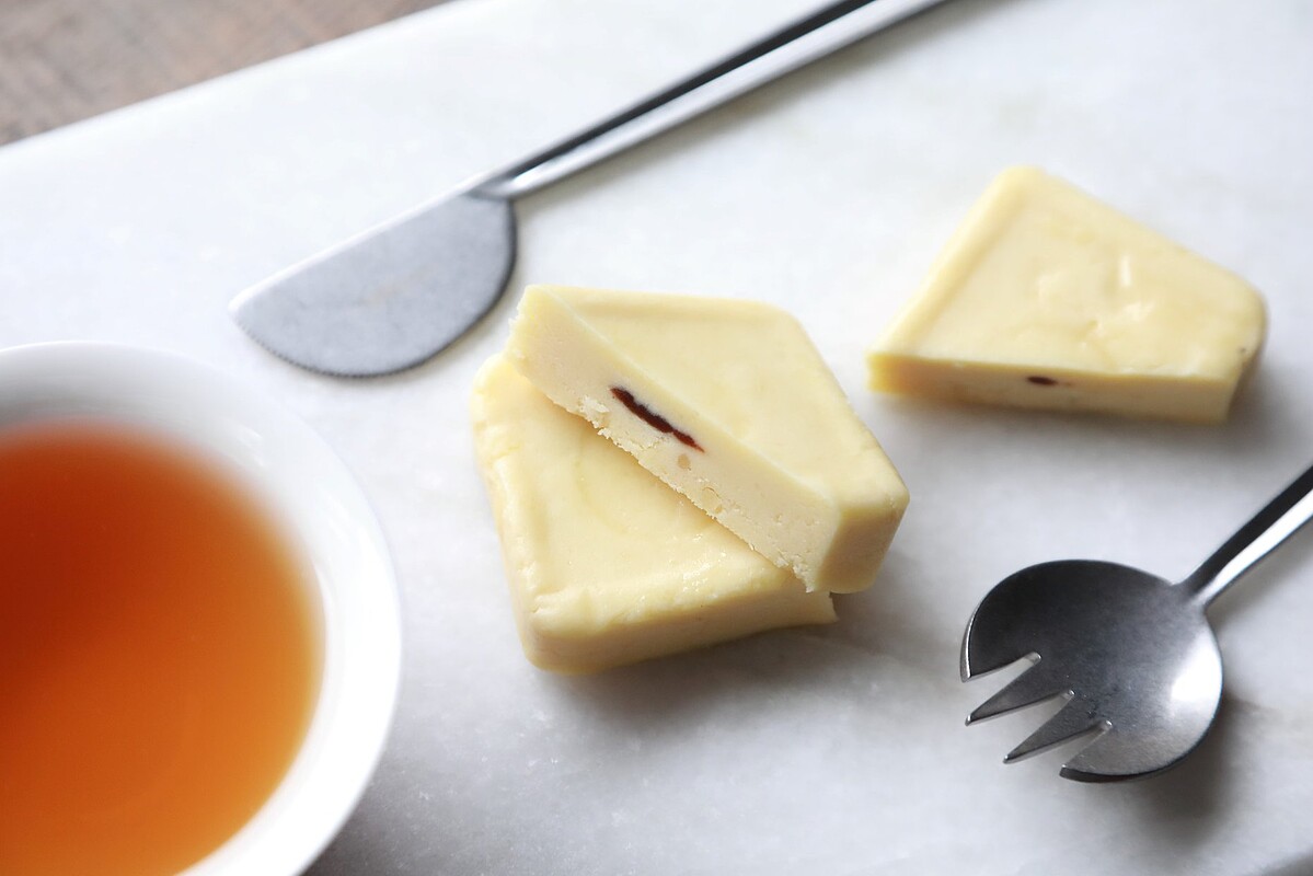 綠豆糕控的口袋名單《港記酥皇》,綿密入口即化的口感,可是最療癒的午茶小點,招牌「翡翠綠豆糕」以純天然食材手工巧製而成,將去殼後的綠豆仁,加入植物油、進口 Anchor 安佳奶油,細細研磨成綠豆蓉,內餡以紅豆打製而成的烏豆沙入餡,將綠豆糕的口感層次提升。