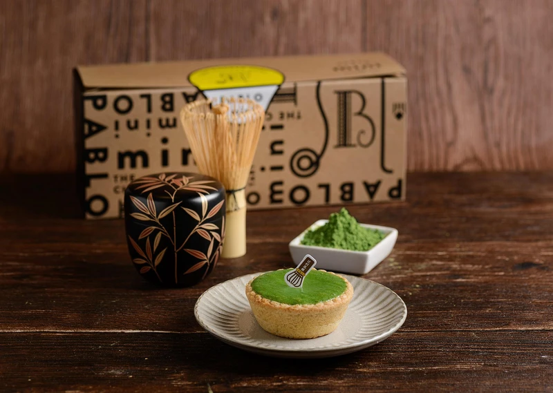特選100%京都府少數有機認證栽培的一番茶,其抹茶特有的覆蓋茶香顯著、入口苦味甚少新鮮回甘、外觀與色澤都是抹茶鮮度昇華的體現,結合PABLO起司塔的濃醇滋味與酥脆塔皮的口感,抹茶控們準備好嚐鮮一波啦!