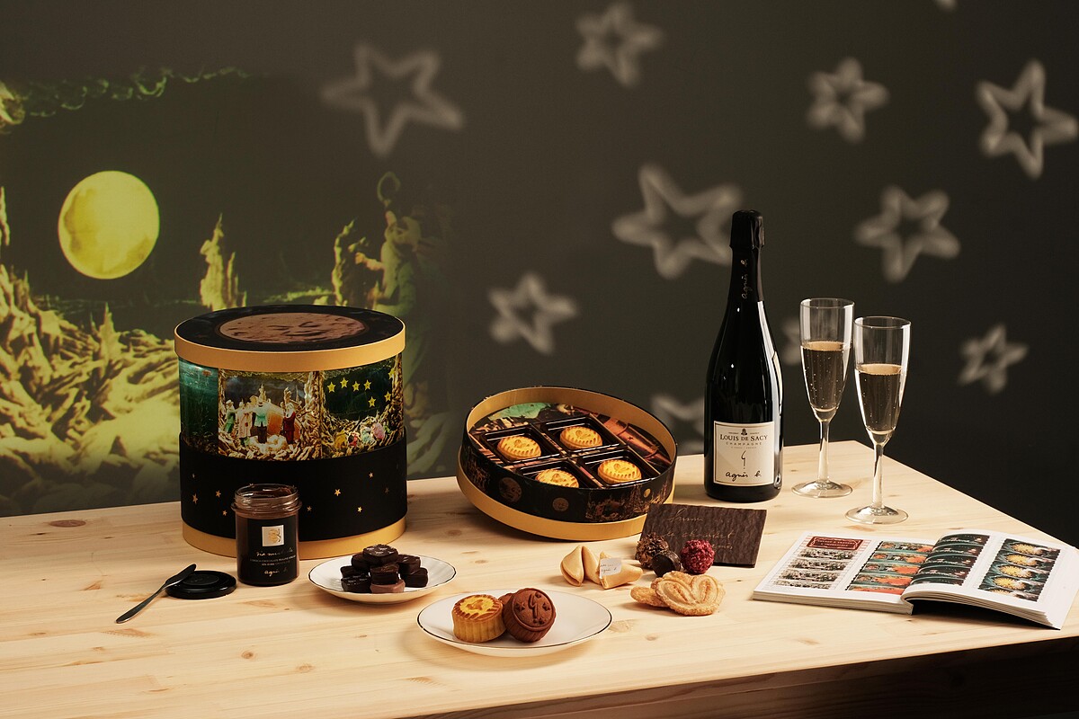 agnès b.每年的中秋禮盒都讓人充滿驚喜感!今年推出充滿藝術氣息的法式月餅禮盒,外盒設計靈感來自法國科幻電影《月球旅行記(Le Voyage dans la lune)》,而電影中創造的超現實世界讓Agnès女士深深着迷,在今年的月餅禮盒包裝印上以電影特效創作的「月亮微笑」,與中秋賞月的意象呼應;而圓形禮盒更象徵月圓人團圓的寓意,將法國電影以及中式傳統元素相互交織。打造出獨樹一幟的藝術氣息!
