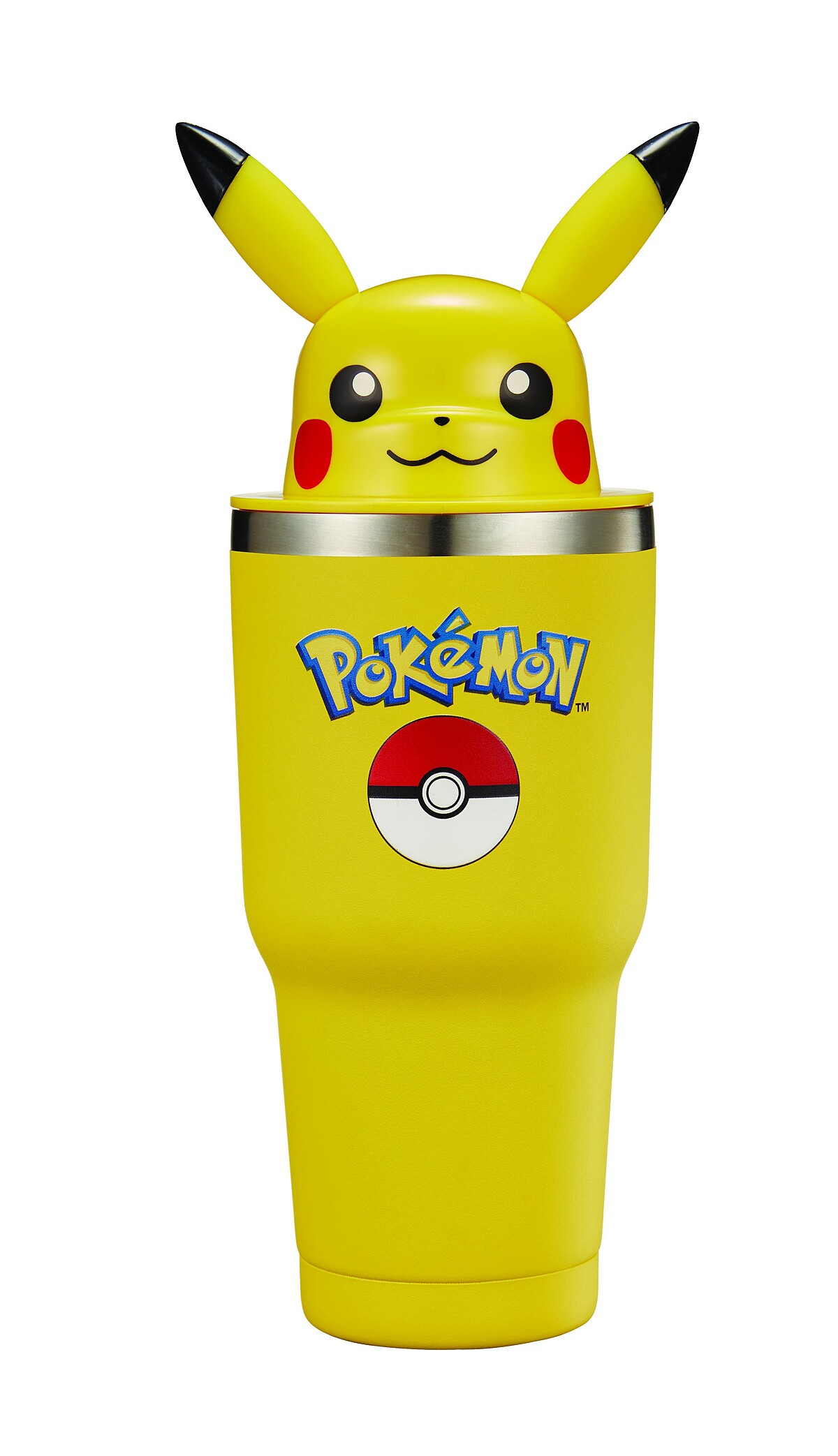 黃色杯身印有寶可夢精靈球圖案,蓋子是皮卡丘的立體造型,杯子容量900ml,內膽是316不鏽鋼,外層是304不鏽鋼,保冰效果絕佳,絕對是夏日必備!