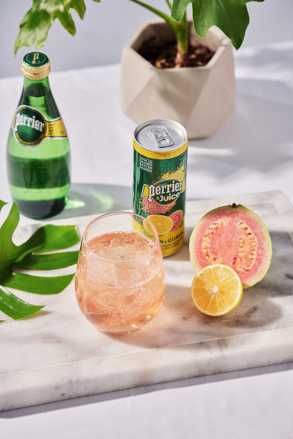 這款「Perrier & Juice法國沛綠雅檸檬芭樂氣泡綜合果汁」將淡雅芬芳的檸檬搭配清爽香甜的紅心芭樂,並使用沛綠雅氣泡天然礦泉水完美調和,有著粉紅香檳的浪漫色澤,喝起來更充滿清新果香。