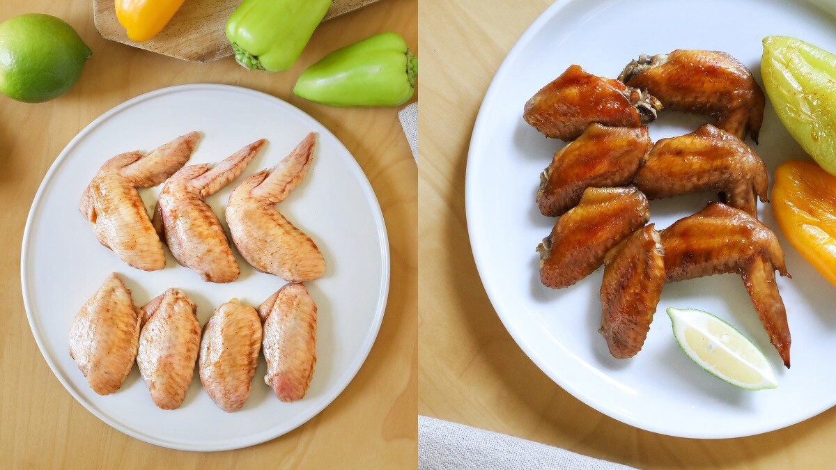 3. 台式燒烤雞腿排放進氣炸鍋,先140度烤10分鐘,再160度烤4分鐘後放涼備用。
