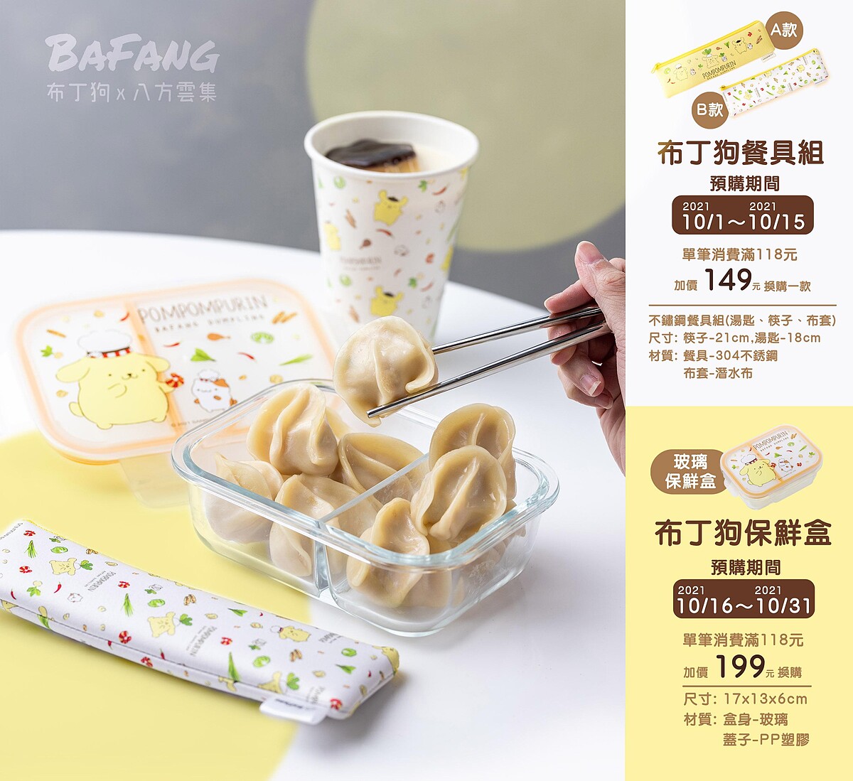 這次聯名活動的主軸終於登場啦!5款聯名商品在10月分兩階段開放限時加購,只要在八方雲集全台門市消費滿118元就能加購1件商品,消費滿236元可以加購2件,以此類推,或是點布丁套餐直接符合加價購資格,超乾脆的加購門檻,值得將聯名商品全系列收藏。這波聯名商品都是限量推出,每款只有5,000份,採預購制,一定要瞄準預購時間到八方雲集,先收先贏。